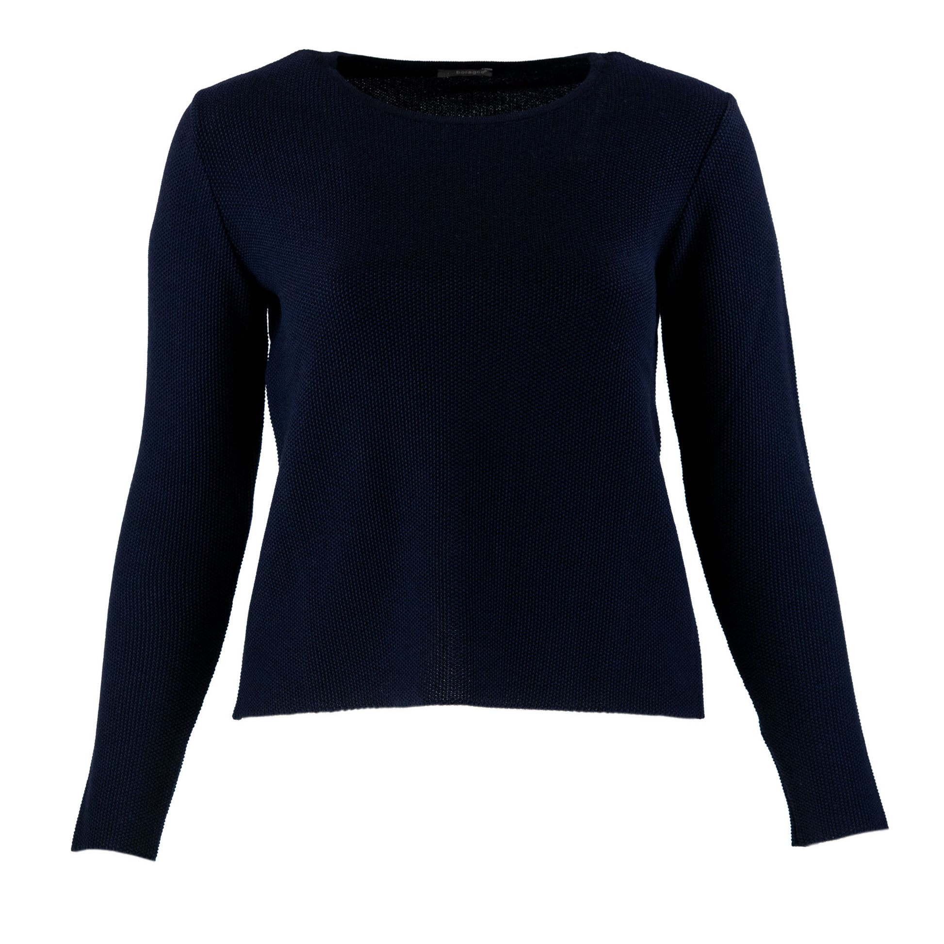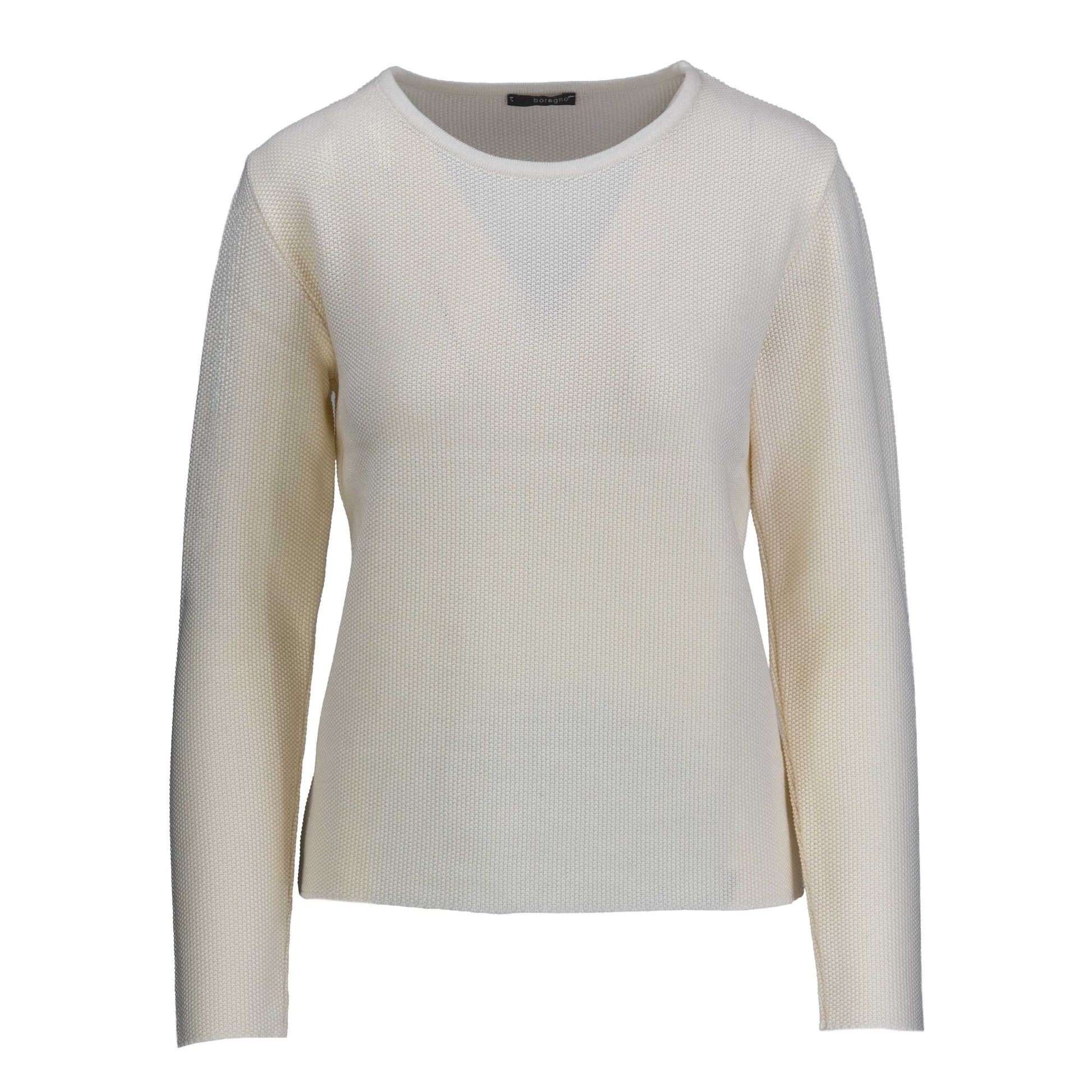 Die Brustweite wird quer über den Pullover gemessen, genau am unteren Ansatz der Ärmel.